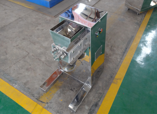 搖擺式顆粒機(jī)運(yùn)行時(shí),加料理和篩網(wǎng)位置的松緊直接影響制得顆粒的質(zhì)量。加料斗中加料量多而篩網(wǎng)夾得比較松時(shí),由于滾筒旋轉(zhuǎn)時(shí)能增加軟材通過(guò)篩網(wǎng)的次數(shù),均能使得的顆粒堅(jiān)硬。