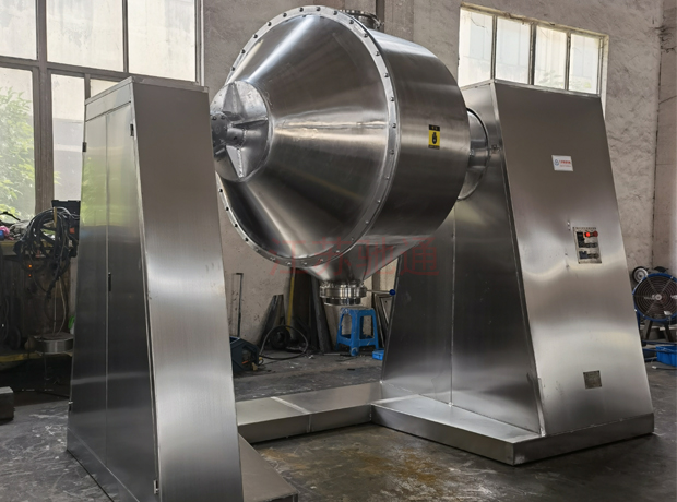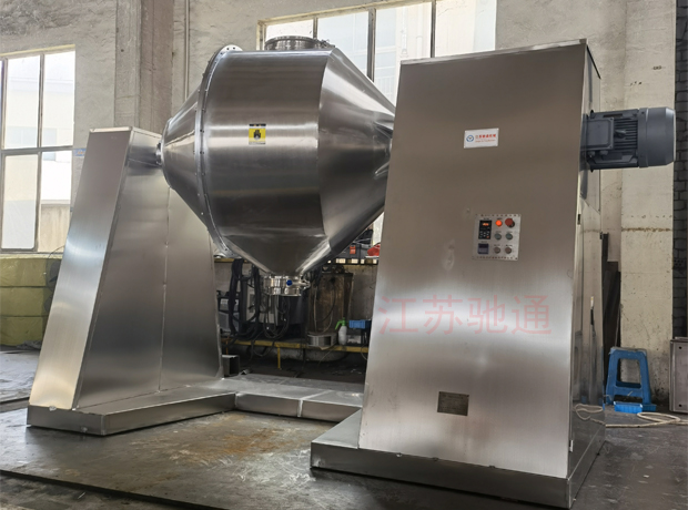 (三)雙錐筒進(jìn)料口采用快開(kāi)旋開(kāi)閥,出料口采用大口徑90°旋閥,使用特別方便。