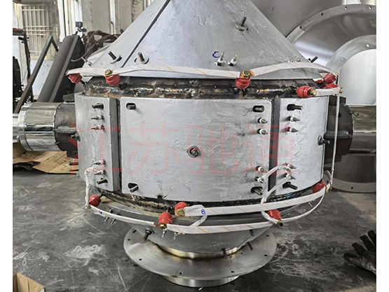 雙錐真空干燥機(jī)通過大小齒輪連接方式傳動(dòng),因而設(shè)備運(yùn)行平穩(wěn)。特別設(shè)計(jì)的工裝,充分體現(xiàn)了兩支軸的良好同心,真空系統(tǒng)均采用可靠的機(jī)械密封,給電系統(tǒng)采用旋轉(zhuǎn)滑環(huán)。在此基礎(chǔ)上,熱媒采用特制電加熱板復(fù)合內(nèi)膽加熱,它既可調(diào)功率,又能進(jìn)行分路控制電熱板加熱,從而達(dá)到罐內(nèi)物料均勻干燥效果。此雙錐真空干燥機(jī)特別適用于新能源與金屬粉末的干燥,解決了以往長時(shí)間使用導(dǎo)熱油加熱產(chǎn)生油垢而升不上溫度的缺點(diǎn)。該改良后的設(shè)備操作簡(jiǎn)單,維護(hù)方便,使用壽命長。